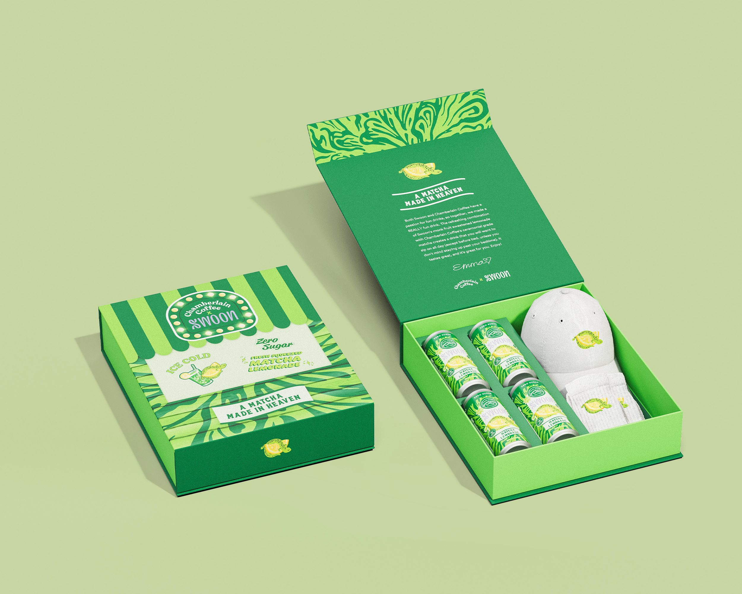 What began as a cold outreach to contact Emma Chamberlain’s team after seeing her organic love for Swoon on YouTube became a collaboration of two brands who love to make great drinks. A Matcha Made in Heaven, Swoon and Chamberlain Coffee have come together to create a zero sugar Matcha Lemonade that’s this summer’s hottest drink.